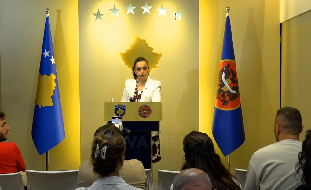 Presidentja e vendit, Vjosa Osmani, në konferencën ku njoftoi zyrtarisht se i kanë kërkuar Gjykatës…