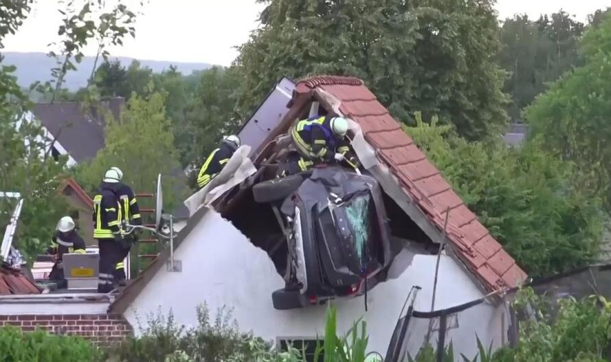 Vetura ngjet çatinë e një stalle në Gjermani, disa të lënduar