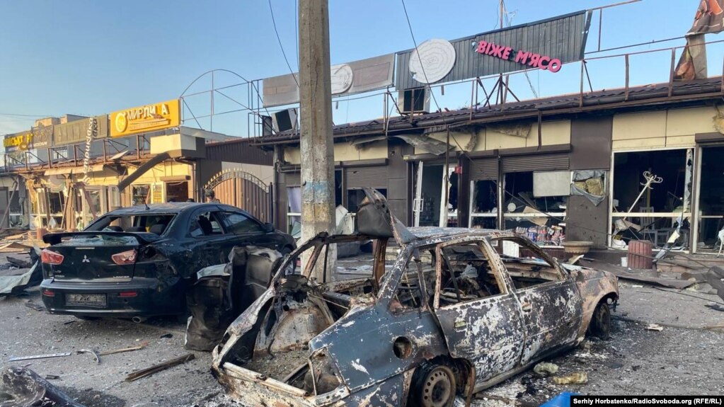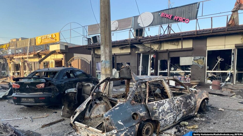 Një sulm nga forcat ruse të mërkurën në një qendër tregtare dhe treg në Dobropillia,…