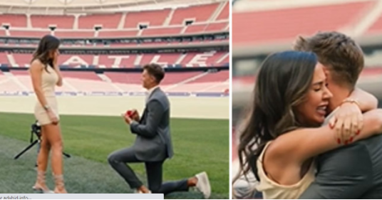 E mashtroi duke e sjellë në stadium, ylli i Atl Madrid i ulet në gjunjë dhe e propozon të dashurën