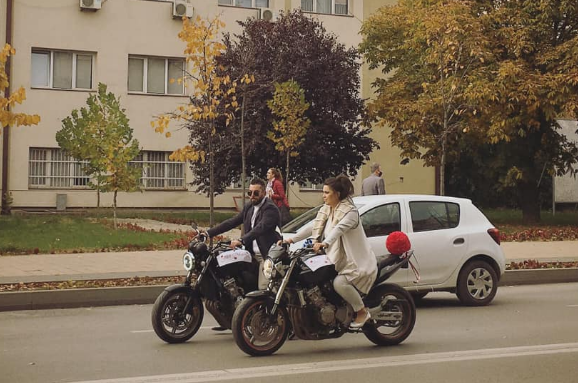 E lezetshme: Çifti i sapomartuar bën xhiro me motor nëpër Prishtinë