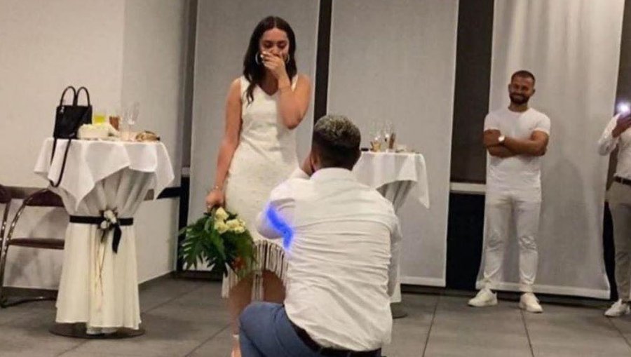 Reperi shqiptar i propozon të dashurës në gjunjë