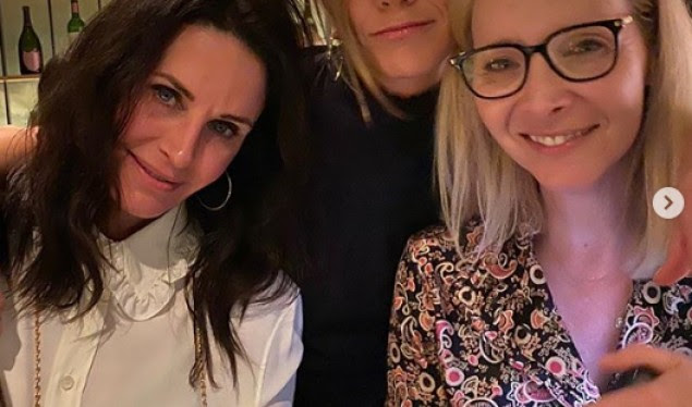 Jennifer Aniston postoi foto me Courteney Cox dhe Lisa Kudrow, kolege nga seria Friends. “Përshëndetje…