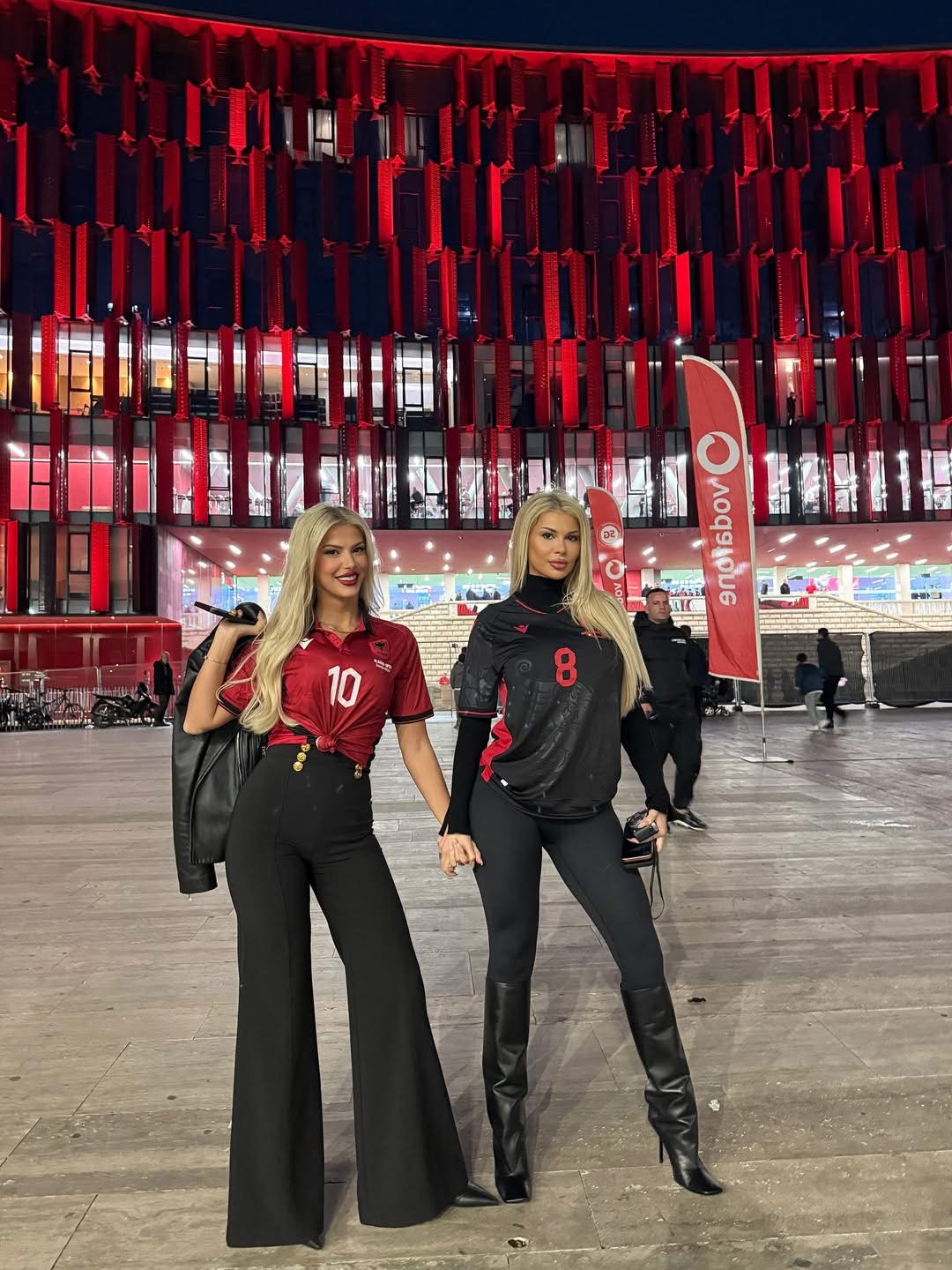 Marina dhe Luana Vjollca gati për ndjeshjen Shqipëri-Angli, marrin vëmendje me pozën para stadiumit ‘Air Albania’