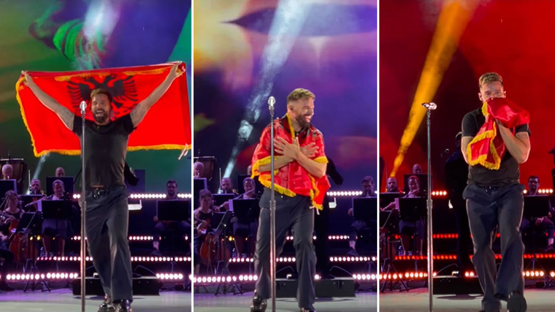 Ricky Martin puthi flamurin kombëtar gjatë koncertit në Tiranë, shkruan “Të dua” në shqip