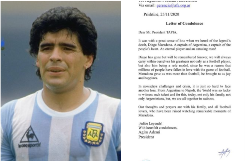 FFK i dërgon telegram ngushëllimi Federatës Argjentinase të Futbollit për vdekjen e Maradonës