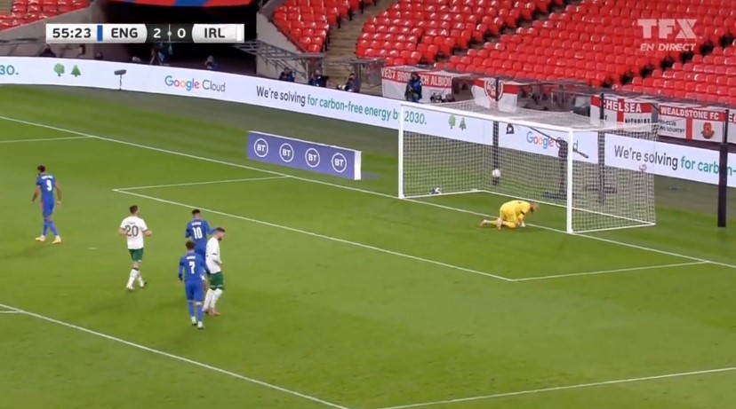 Anglia ia shënon edhe të tretin Irlandës, realizon Calvert Lewin aty ku bashkohet shtylla me transversalen