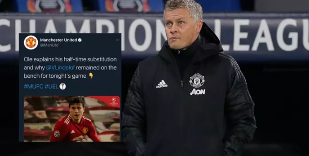 Llogaria zyrtare e klubit të Manchester Unitedit në Twitter, mbrëmë pas humbjes së tyre në…