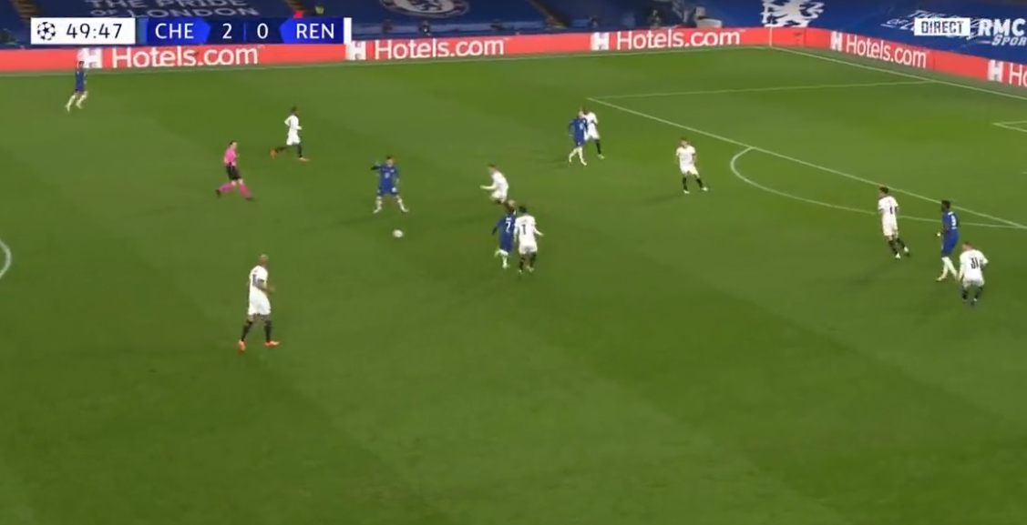 Chelsea ka shënuar edhe golin e tretë kundër Rennesit, që po luan me dhjetë lojtarë.…
