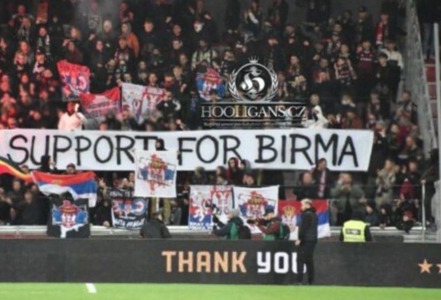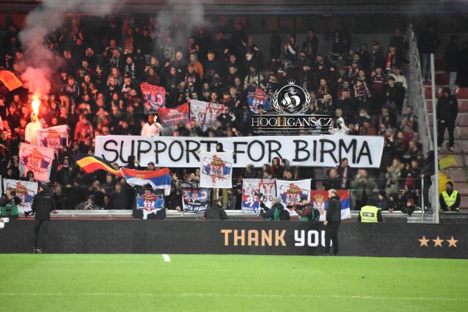 Dje, gjatë takimit Sparta Praga – Banik Ostrava, tifozët vendas shpalosën një baner në mbështetje…