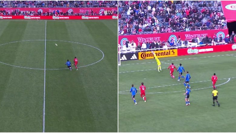 I ndihmuar edhe nga erërat e forta, shoku i Xherdan Shaqirit shënon gol spektakolar nga gjysma e fushës