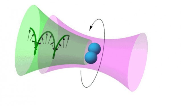 Nano-grimcat në formë shufre rrotullohen me shpejtësi të konsiderueshme nga dy forca të ndryshme drite…