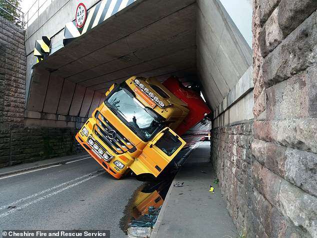 Shoferi që po udhëtonte nëpër Cheshire të Anglisë, ka mbetur i bllokuar me kamion poshtë…