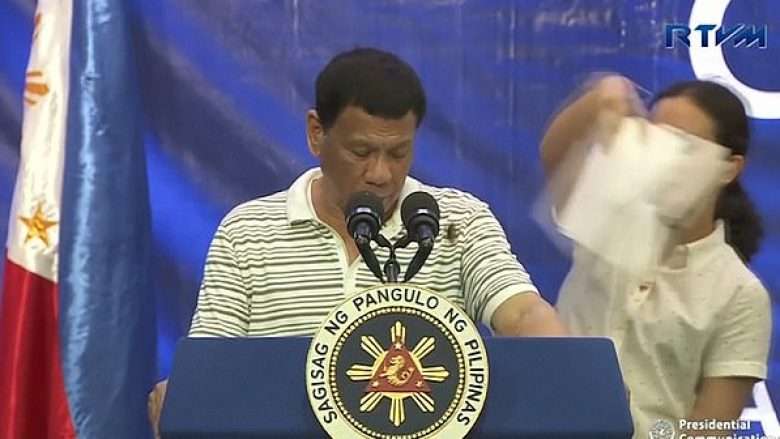 Presidentin filipinas e çmend një insekt që shëtiste nëpër trupin e tij gjatë konferencës (Video)