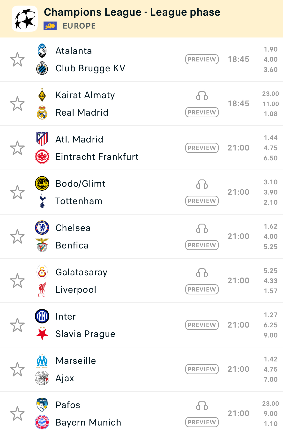 Përballje interesante pritet të jetë ajo mes Chelsea dhe Benfica, me Jose Mourinhon që rikthehet në ‘Stamford Bridge’, por tashmë si trajner i skuadrës portugeze.