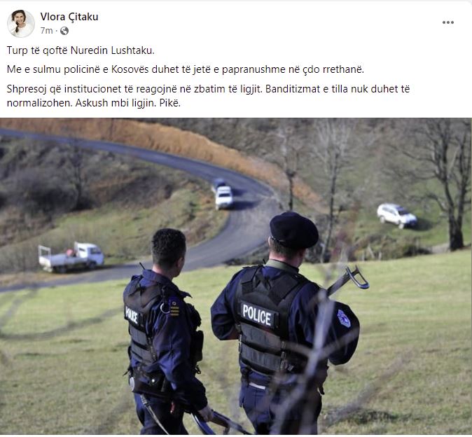 Nënkryetarja e PDK-së, Vlora Çitaku ka reaguar pasi u sulmuan pjestarët e Policisë së Kosovës, e që në këtë rast dyshohet se është i përfshirë ish-nënkryetari i Komunës së Skenderajt, Nuredin Lushtaku dhe disa nga familjarët e tij.