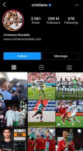 Futbollisti portugez, Cristiano Ronaldo, për vite me radhë është njëri ndër futbollistët më të mirë në botë, e që ai është sportisti më i ndjekur në rrjetin social “Instagram” duke numëruar afër 300 milionë ndjekës.