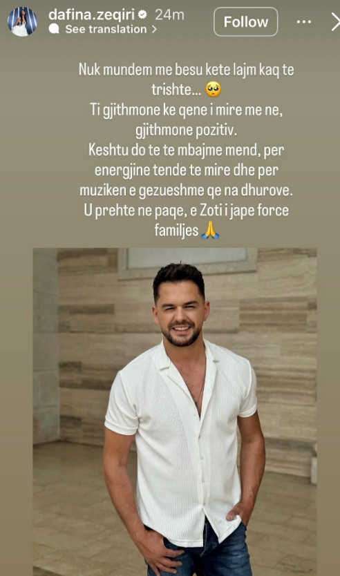 “Nuk mundem me besu këtë lajm kaq të trishtë … Ti gjithmonë ke qenë i mirë me ne, gjithmonë pozitiv. Kështu do të mbajmë mend, për energjinë tënde të mirë dhe për muzikën e gëzueshme që na dhurove. U prehtë në paqe e Zoti i japtë forcë familje”, ka shkruar ajo./Periskopi