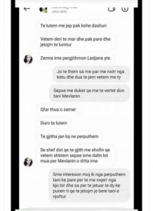 ”S’me intereson moj ik nga Perputhen tani ke pare sa per te me nxjerre nga kjo bire dhe sa per te jetuar te dy ke punen ti qe te jetojme. Tani je bere e njohur”.- shkruan bashkebiseduesi.