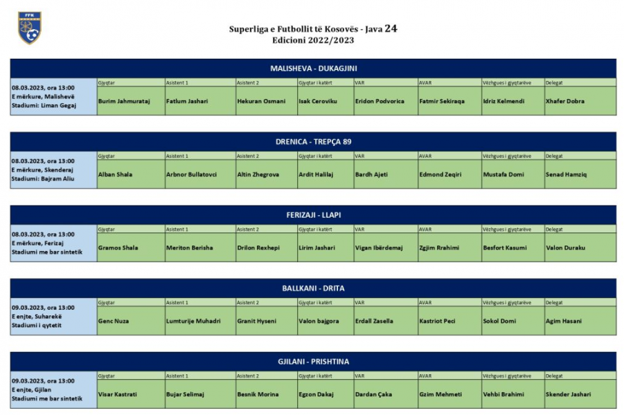 Nga Federata e Futbollit e Kosovës janë zbuluar tashmë emrat e të deleguarve për këtë javë: