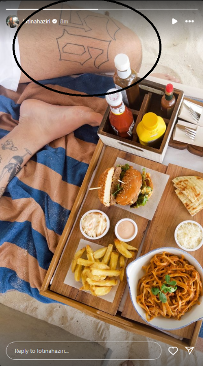 Edhe pse e ka mbajtur të fshehur portretin e reperit, detaji që e tradhtoi ishte pikërisht këmba si dhe numri i bërë tatuazh 95.