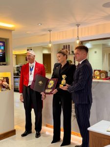 Gjatë ceremonisë në Oxford, Jona Devolli u nderua me emblemën e artë të cilësisë, e cila simbolizon arritjet e kompanisë në standardet operacionale, qeverisjen korporative dhe vizionin strategjik që ka çuar Devolli Group drejt zgjerimit ndërkombëtar.