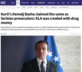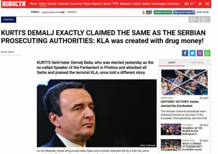 Festë titujsh si “Dimal Basha i Albin Kurtit tha të njëjtën gjë si Prokuroria e Serbisë: UÇK u krijua me para të drogës”.