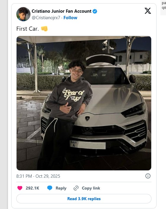 Djali i Cristiano Ronaldos veç 15 vjet, bëhet me veturë Lamborghini
