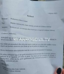 Në kërkesën e drejtuar prokurores Besa Limani shkruan:
