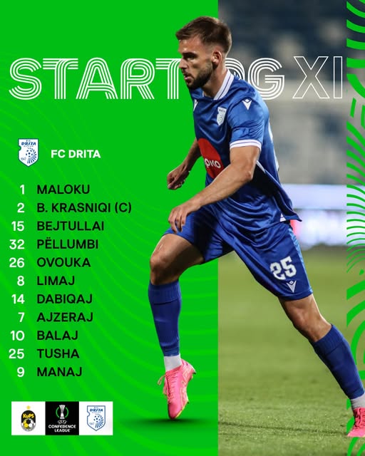 Drita e ka publikuar formacionin zyrtar në ndeshjen ndaj KuPS në xhiron e parë të fazës së ligës në Ligën e Konferencës.