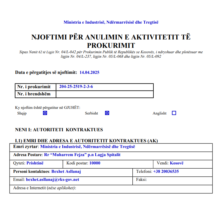 Periskopi ka dërguar pyetje në MINT për arsyen e largimit të ish-drejtuesit të Zyrës së Prokurimit në MINT, Bexhet Asllanaj, si dhe “largimi nga puna a ishte shkak tenderi për ndërtimin e parkut industrial në Podujevë”.