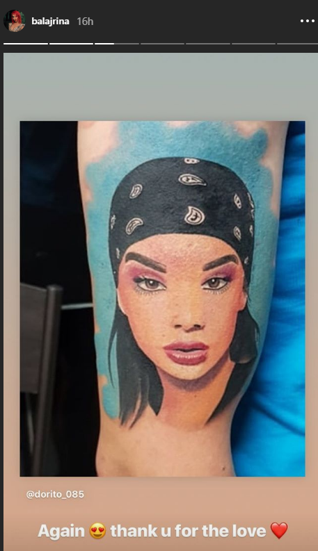 Rina ka hedhur një fotografi në Instastory ku shihet se dikush bëri tatuazh fytyrën e saj, në krahun e saj.