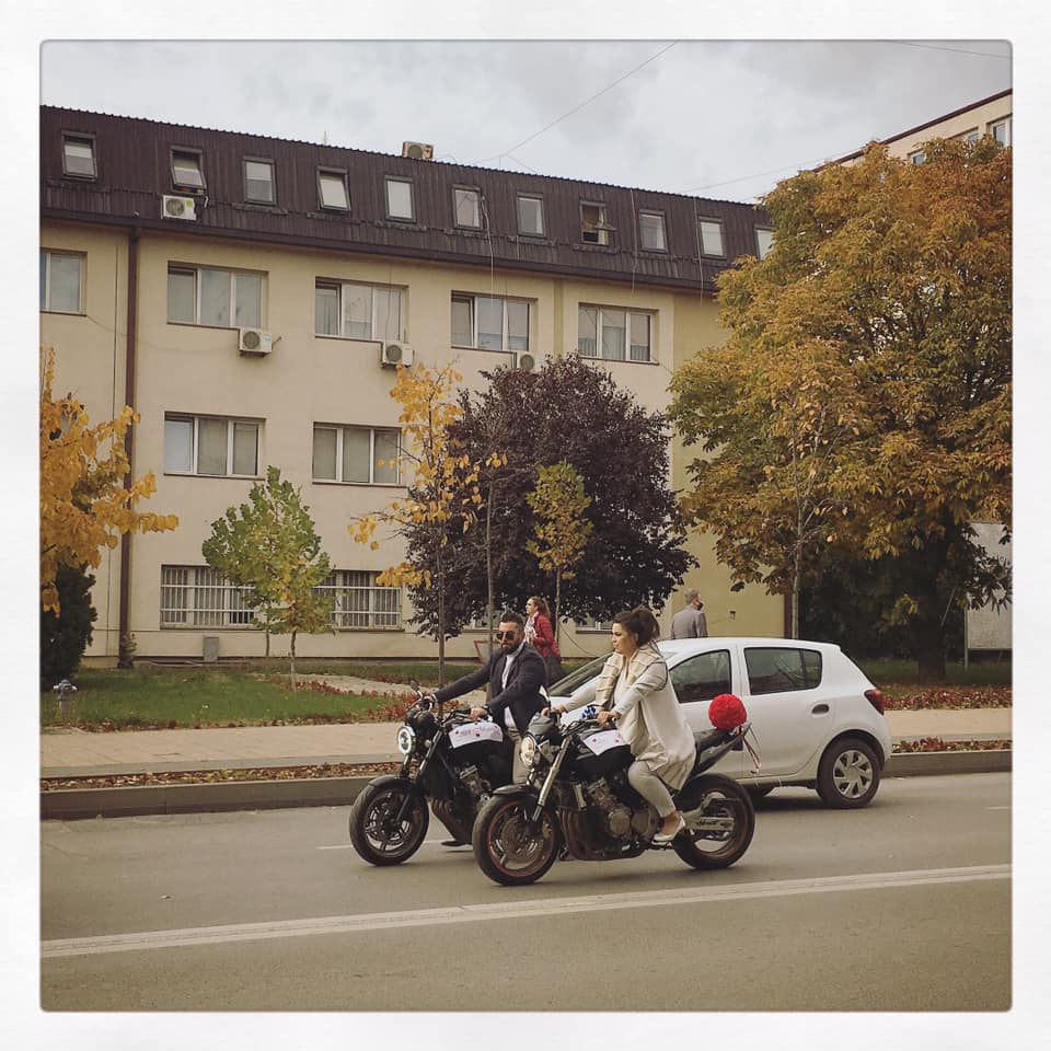 Një cift i sapomartuar, sot ka tërhequr vëmendjen nëpër rrugët e Prishtinës, duke shëtitur me motocikleta.