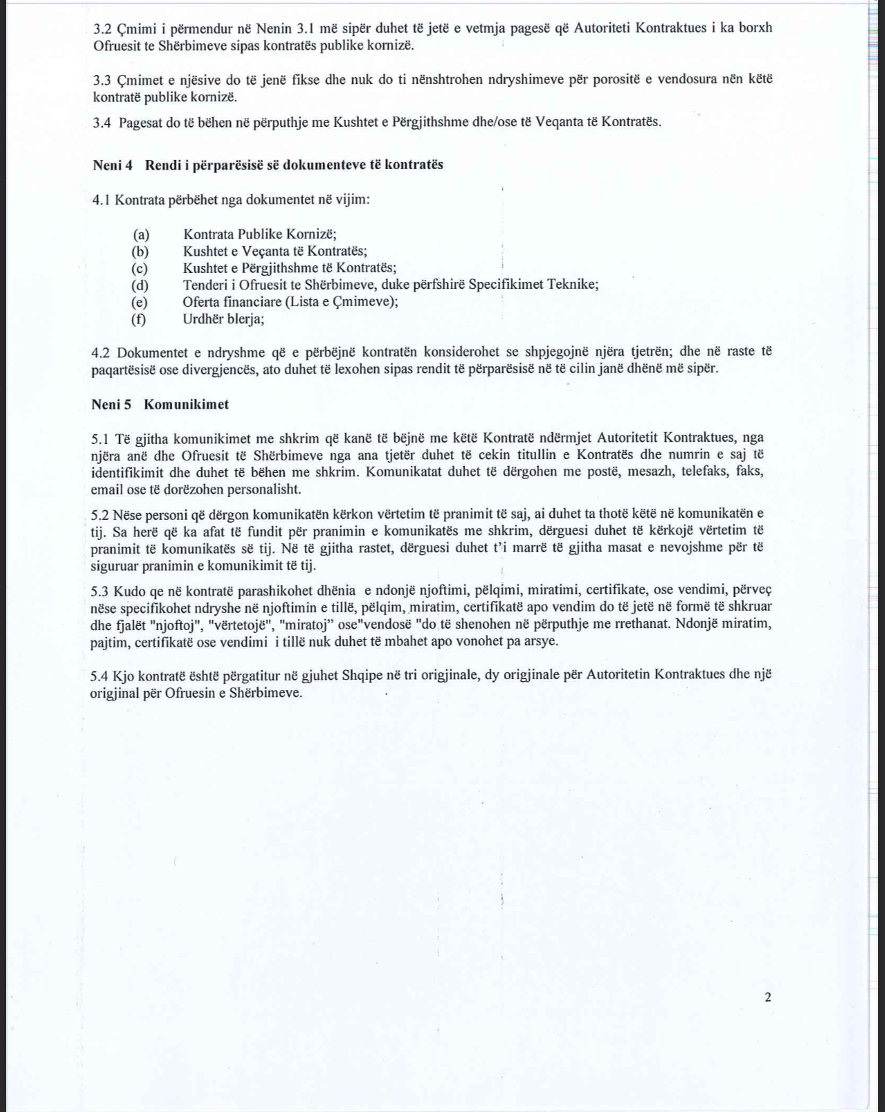 Kontrata e negociuar do të ndërpritet në rast se autoriteti kontraktues lidhë një kontratë të rregullt për realizimin e shërbimeve para përfundimit të periudhës 3 mujore“, thuhet në dosje.