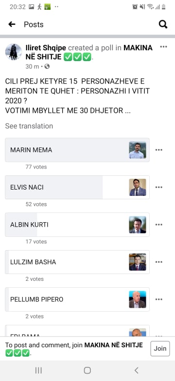 Në një sondazh të hapur në një grup Facebook-u të quajtur “Makina në shitje” është hapur një sondazh në lidhje me personazhin shqiptar të vitit.
