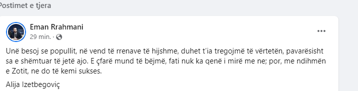Por, paraqitja e Kurti nuk i ka pëlqyer Rrahmanit sepse ai ka thumbuar me një status kryeministrin.