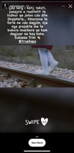 Me anë të një postimi, modelja Adrola Dushi thotë se çdo varg i këngës është pasqyrë e realitetit të hidhur, andaj ngjall emocione të forta.