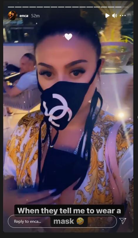 Si duket së fundmi asaj i është kërkuar mbajtja e maskës sepse këngëtarja ka publikuar pamje të maskës unike që po përdor atje.