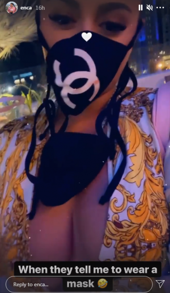 E ndërsa ka shijuar magjitë e Dubait, Encës i është kërkuar të vendosë maskën, por ajo ka hequr të brendshmet dhe i ka vendosur si maskë.