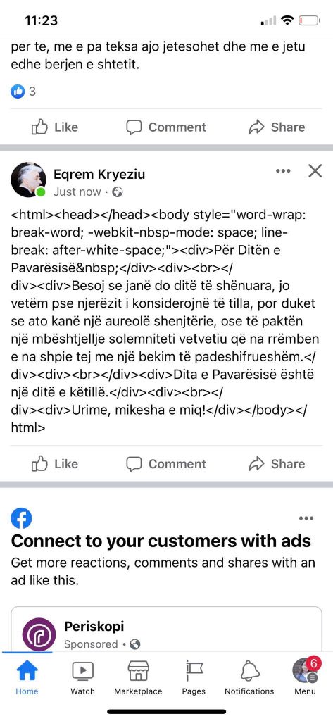 Eqrem Kryeziu mesazh për 14 shkurtin: head head body style word wrap after line space