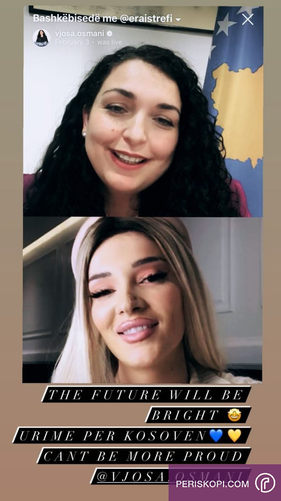 Era ka shfrytëzuar storien në Instagram duke publikuar një fotografi bashkë me Vjosa Osmani-Sadriun derisa ka shkruar një urim.