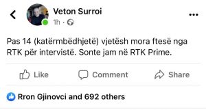 I njohur si përkrahës dhe propagandues i kësaj që dikur quhej ‘Qeveri e shpresës’, z. Surroi ishte njohur për kushtrimin që pati lëshuar në Facebook: ‘Në Kosovë fryn erë lirie’.