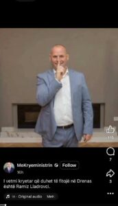 “I vetmi kryetar që duhet të fitojë në Drenas është Ramiz Lladrovci”, është mbishkrimi i faqes “Me Kryeministrin”.