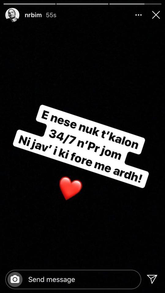 Bëhet fjalë për Bim Bimmën, i cili fillimisht ironizoi me një postim, ndërsa më pastaj shkroi “E nese nuk t’kalon 34/7 n’Pr jom. Ni jav’ i ki fore me ardh!”.