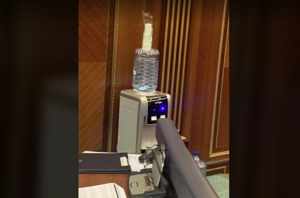 Fitorja me deputetë tjerë të Albinit pinë ujë me gota qelqi, por i mbushin në bidon plastik? (Foto)