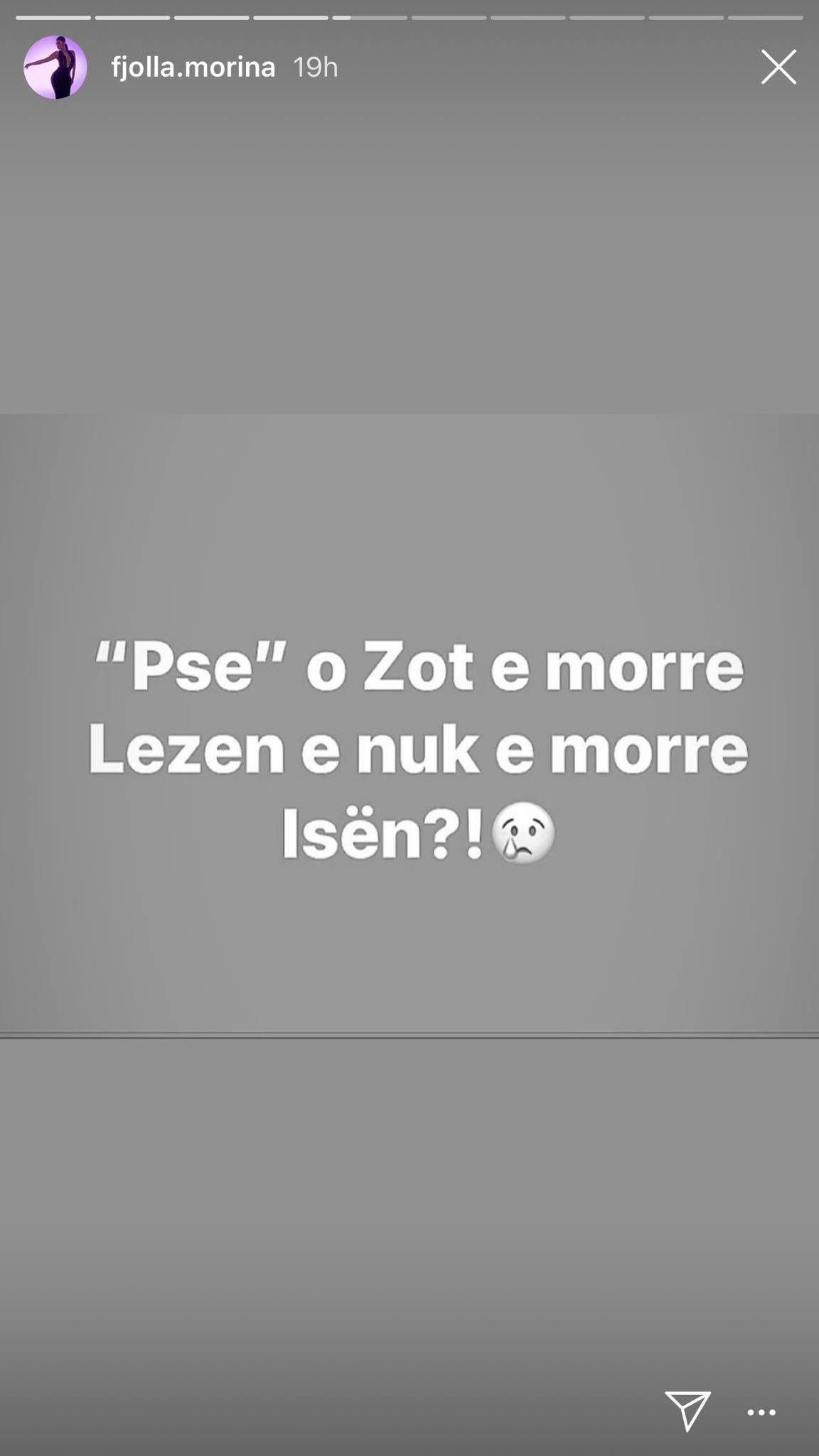 “Pse o Zot e more Lezën e nuk e more Isën?!”, ishin fjalët e Fjollës në Instagram.Ky revoltim i Fjollës duket se vjen pasi mbrëmjen e së mërkurës u votua mocioni i mosbesimit nga LDK në Kuvendin e Kosovës, dhe si rrjedhojë u rrëzua Qeveria Kurti.