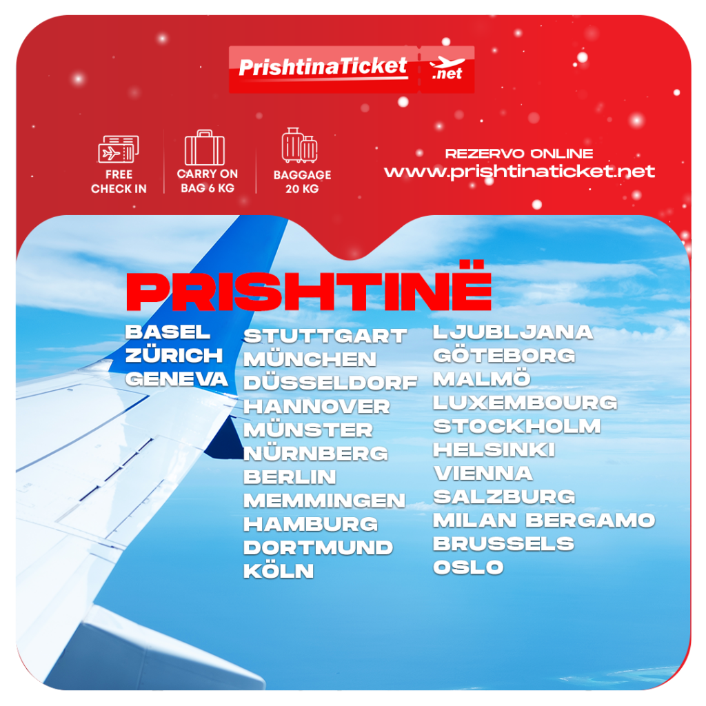 Biletat mund ti rezervoni online duke hapur faqen www.prishtinaticket.net, ku mund të caktoni kohën e saktë të udhëtimit tuaj me çmime ekonomike. Në çmim të biletës përfshihen FALAS rezervim i ulëses, check in, bagazh dore dhe bagazh deri në 20 kg.
