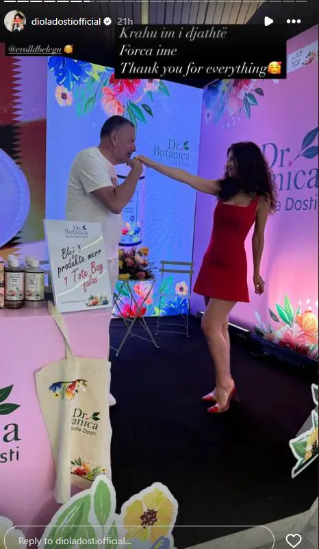 Nutricionistja Diola Dosti orë me parë ka ndarë një postim të veçantë ku shihet pranë bashkëshortit, Erolld Belegu.