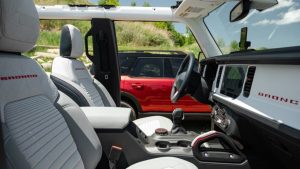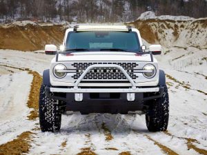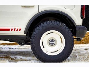 Emri zyrtar i modelit është Ford Bronco Pope Francis Center First Edition, dhe nga jasht bie në sy nijansa e tij, e cila u ofrua në modelin e parë të Broncos, të vitit 1966. Me ngjyrë të bardhë janë edhe rotkapnet, ndërsa si kontrast janë detajet të cilat janë ngjyrosur me ngjyrë të kuqe, pëderisa shtojcat speciale, si braniku për hembull, janë ngjyrosur me ngjyrë argjenti mat.