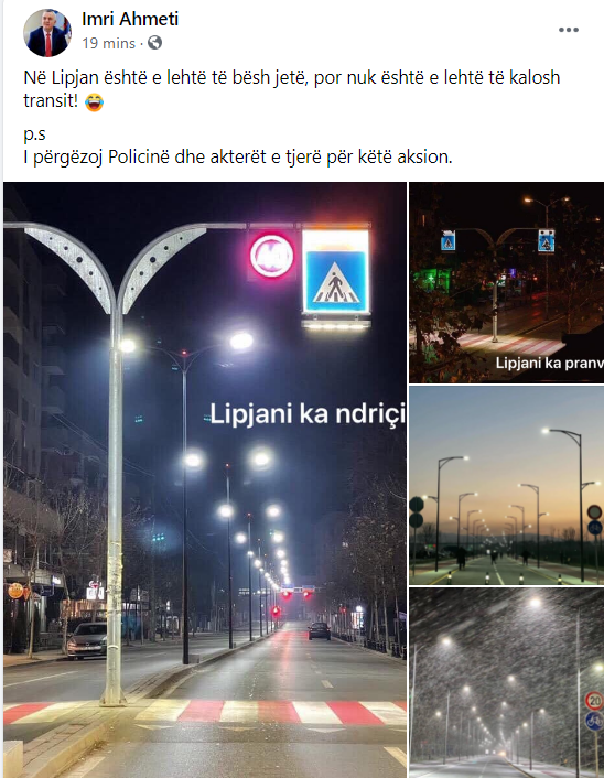 Kryetari i Lipjanit, z.Imri Ahmeti, i është bashkuar meme-reagimeve në Facebook lidhur me lokacionin e kamionit që bartte 400 kg kokainë e që u zu në Lipjan.